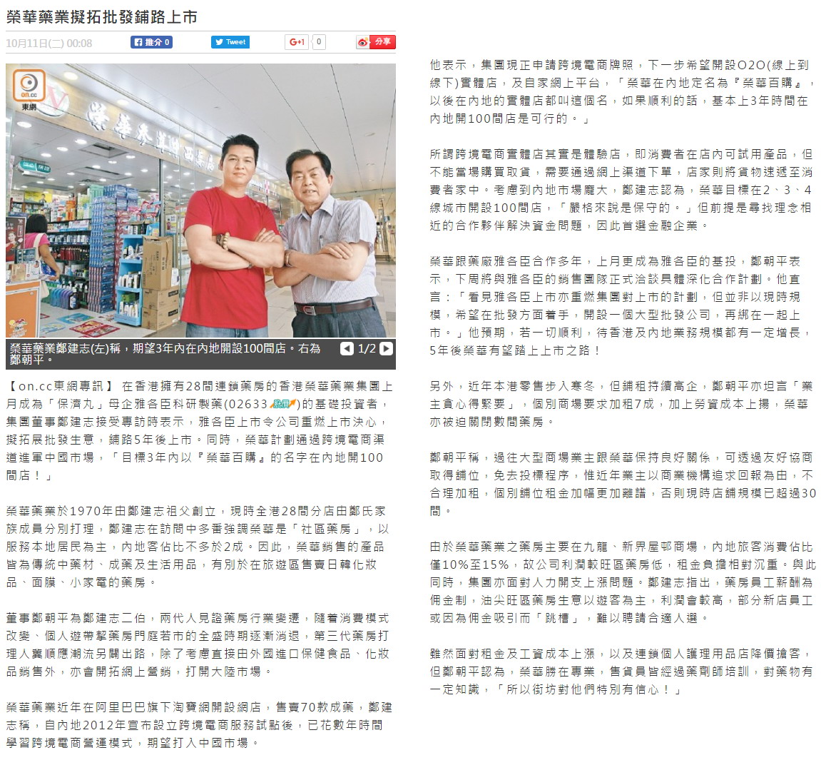香港榮華藥業集團擬拓批發業務,鋪路5年後上市。
