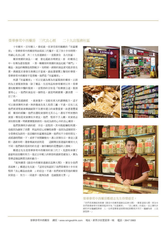 三代繼承有近半世紀的歷史,至今旗下藥房藥行共計接近 30 間,是香港第三大藥業連鎖店。