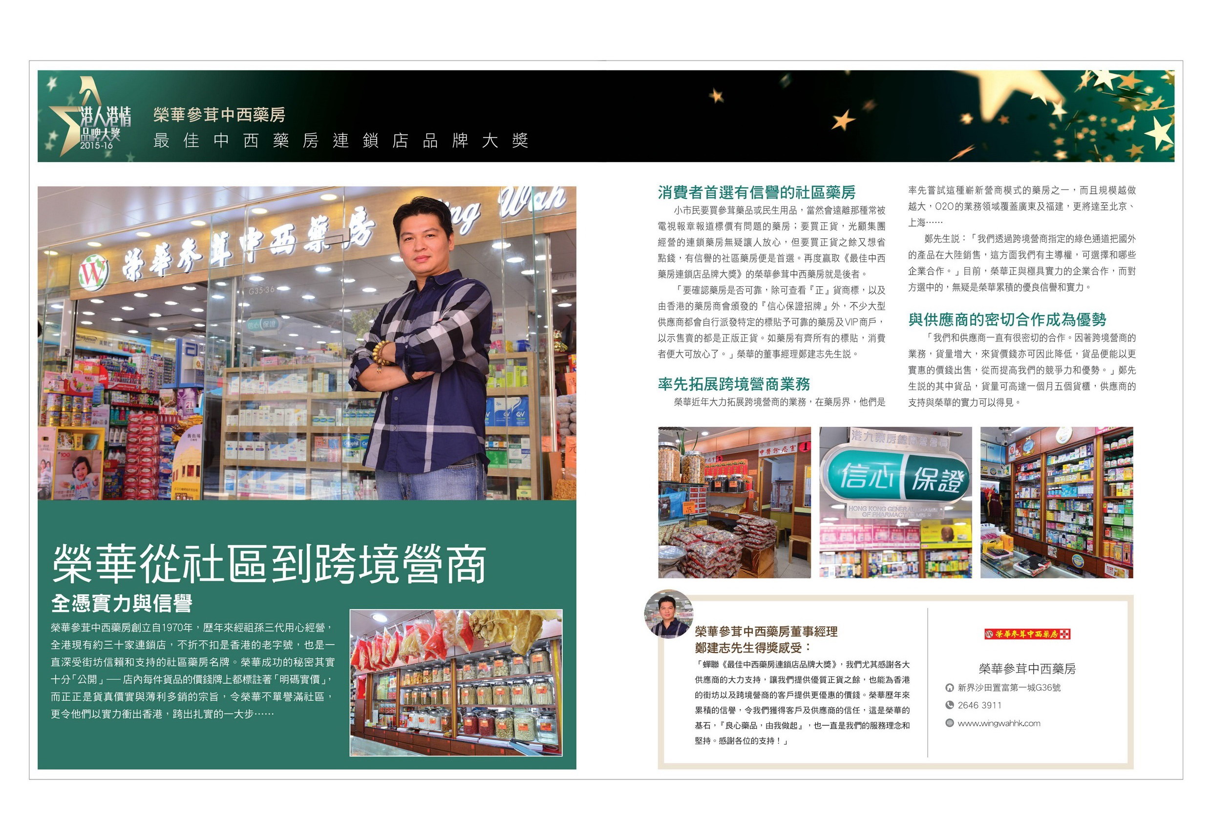 被香港電訊盈科選為香港最佳中西藥房連鎖店。