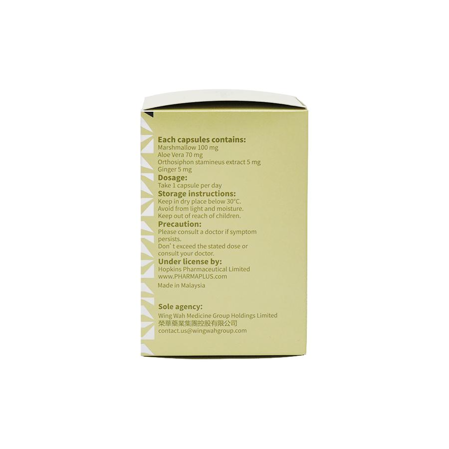 主要成份:藥蜀葵、蘆薈、貓鬚草、薑等